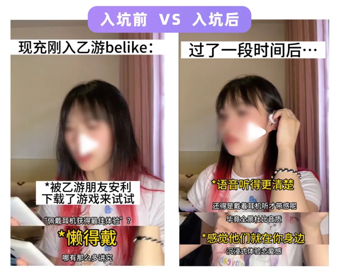 品牌SANAG×达人@余三歪 发布的笔记《现充误入乙游belike:一入乙游深似海…🥲》,内容描绘了博主入坑乙游的“真香”过程,在前后反差中同步植入产品:从误入乙游时的不屑,到带上耳机入坑,获得极致沉浸式的恋爱体验。