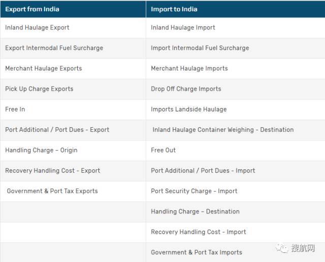 印度消费税的申请将导致进出口服务费的18%的税额,包括与码头处理和内陆运输费用有关的当地费用。这笔税将取代现有的印度服务税收15%。
