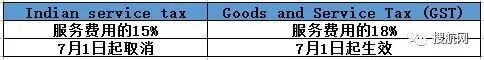 从7月1日起,将把印度各种各样其本地的服务税整合性为货物服务状语从句:税(商品和服务税(GST) ),这个税收也将取代此前公布的印度服务税(印度服务税)。