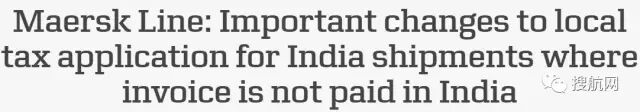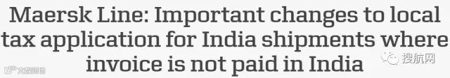 近日,马士基在其官网上就关于印度进出口服务税发布了更新公告,从7月1日起,印度将会出口口印度的货物收取货物和服务税(商品和服务税(GST)),有相关出口计划的货代和外贸企业需留意。