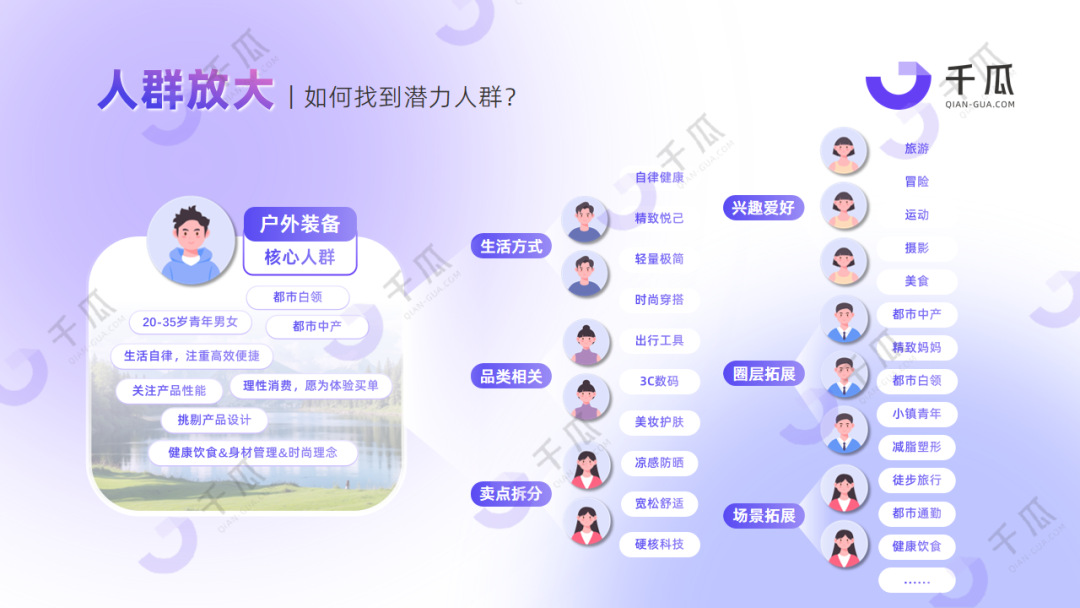 生活方式、圈层拓展人群,如美食与健康生活、家居与极简主义、户外与都市白领;