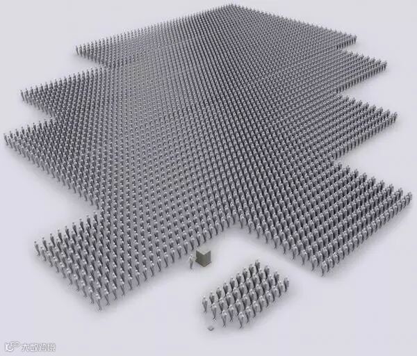 1亿美元也相当于3500名美国人平均工作1年的收入。下图中有2000人肩并肩站着,找工作。
