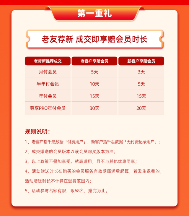 会员壕礼免费送!千瓜老友季,嗨购618!
