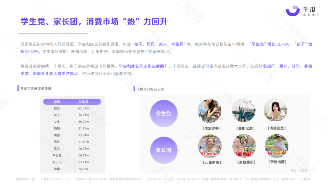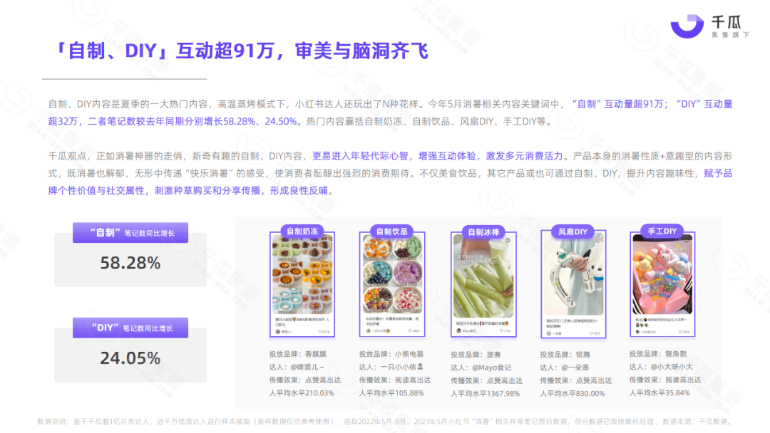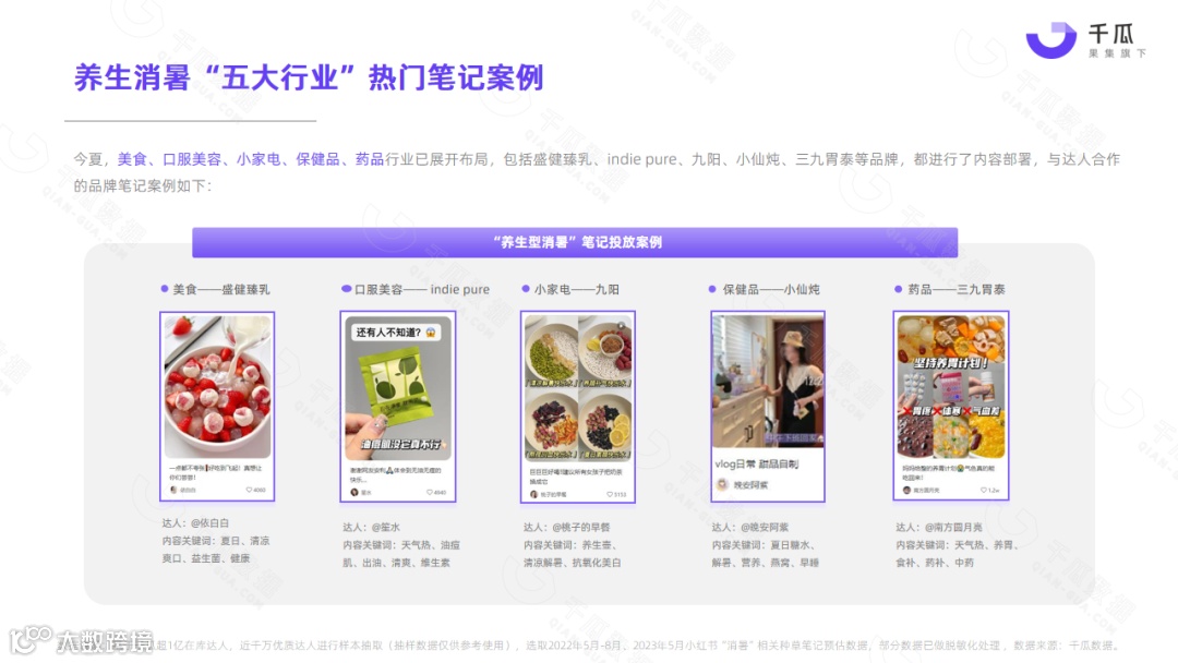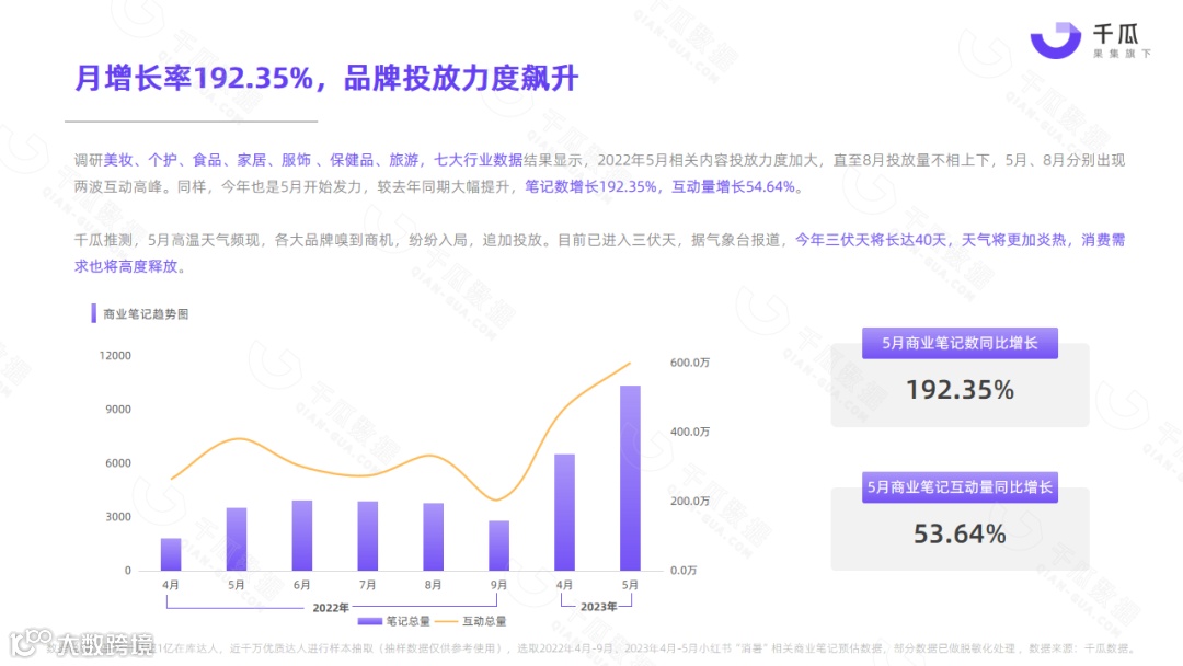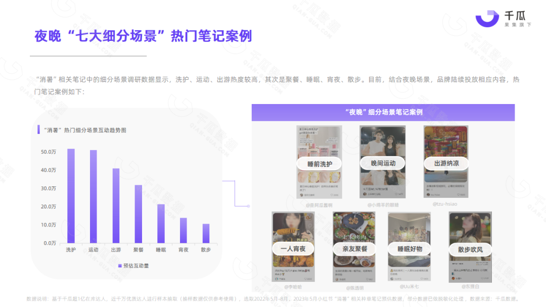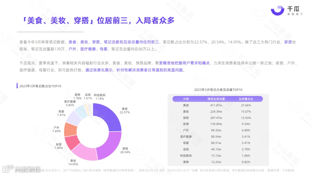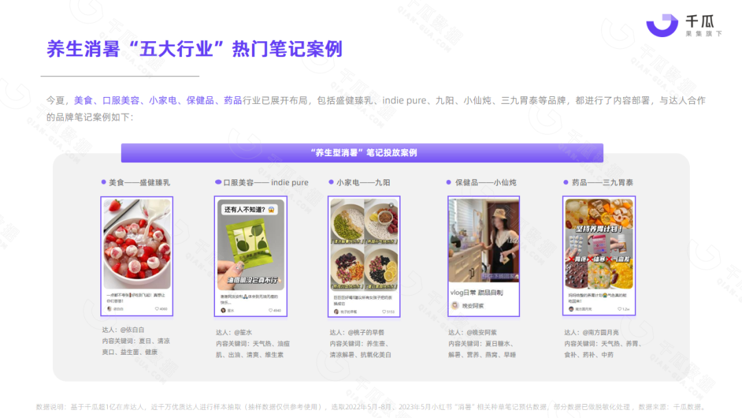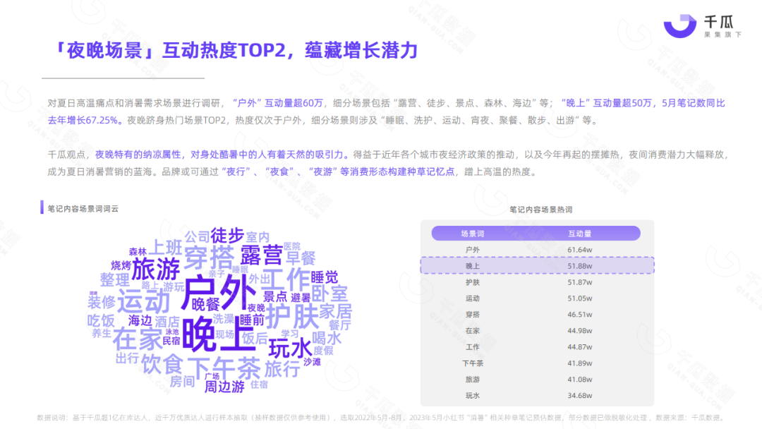 小红书平台5月热门笔记,频现“清凉、消暑、温度、降温”等词,单月相关种草笔记互动量超1000万,降温消暑成刚需。