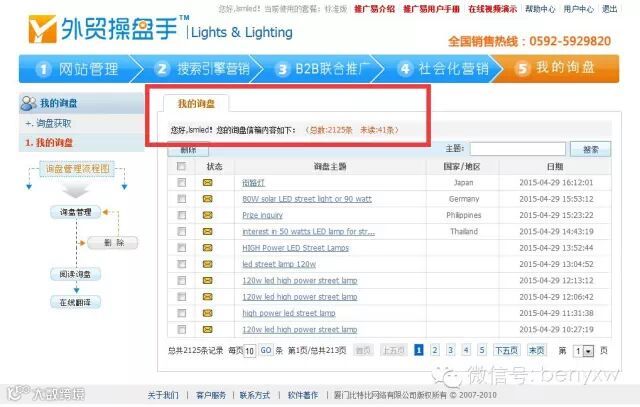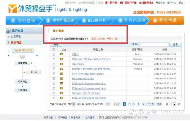 3、询盘量2125条(不含采购商直接发送到客户邮箱的询盘)