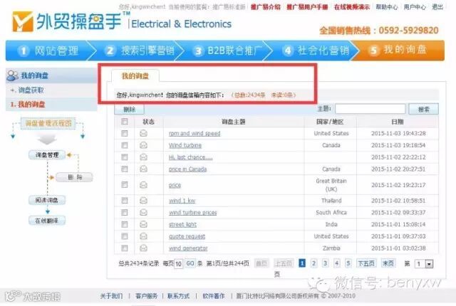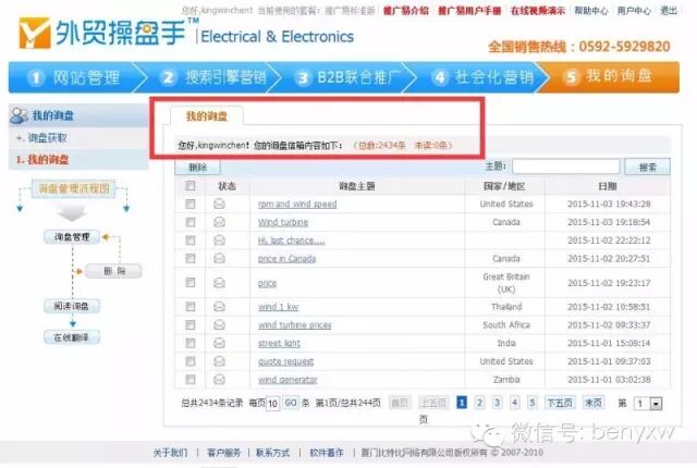 3、询盘量2434条(不含采购商直接发送到客户邮箱的询盘)