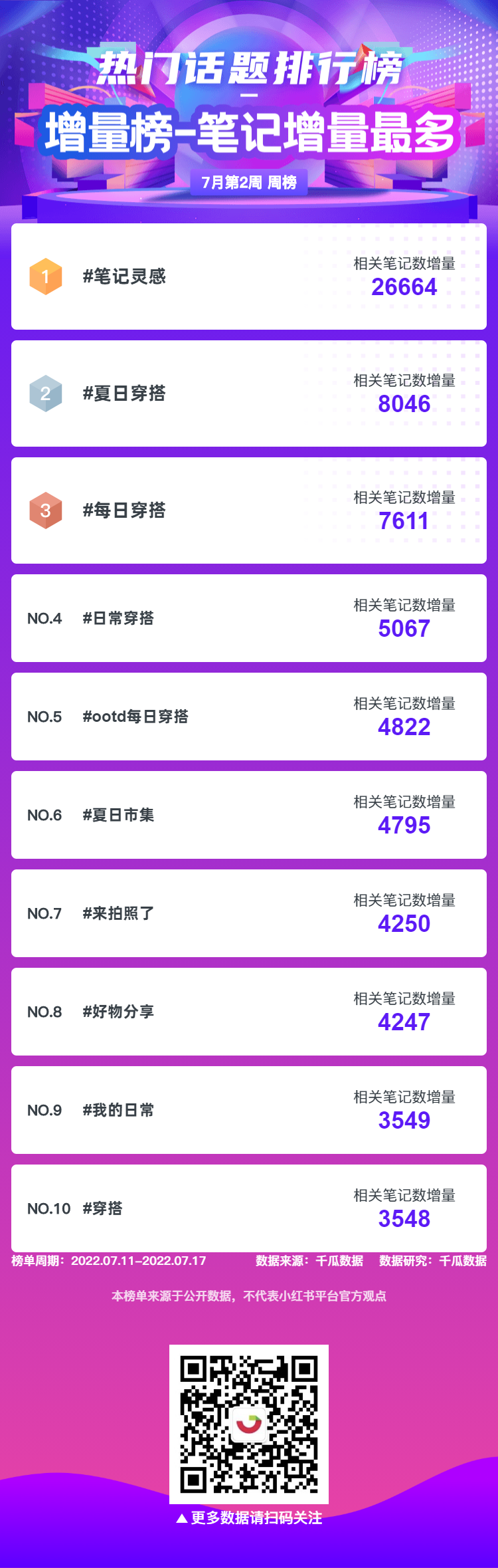 导读:7月第2周千瓜热门榜单(小红书平台)