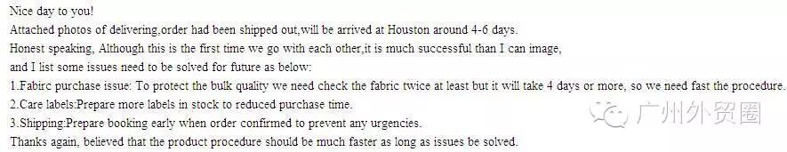 很多外贸新人不知道该如何跟客户沟通,导致客户流失。对于我们外贸人来说和老外做生意,首先一定要做到思维严谨,条理清晰。无论是邮件往来,还是电话沟通,一定要先弄清楚对方的意图,然后在一一为客人解答。行文简洁,逻辑清晰,内容详细。这样才能彰显你的专业。 贴一份我和客人沟通中的邮件,作为例子,希望可以抛砖引玉。这是我们的首次合作,在生产的时候,客人就非常信任的直接结清所有款项。