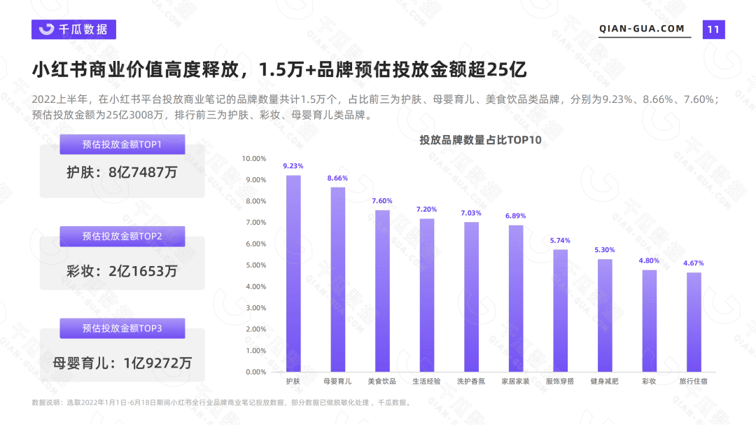 平台商业价值高度释放,在全行业品牌商业笔记投放大盘中,1.5万+品牌预估投放金额超25亿。