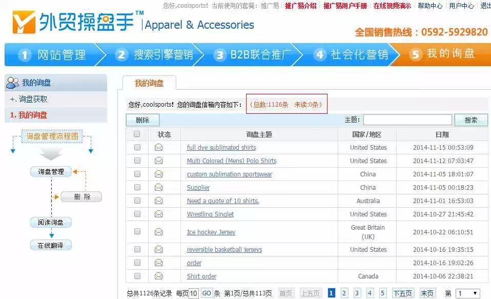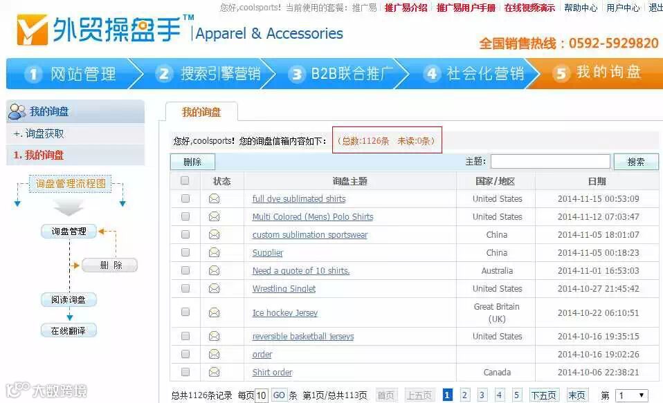 3、询盘情况(三年多后台询盘1126个另外邮箱收到询盘200多个)