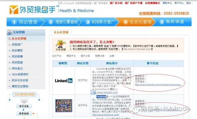 7、 注册好Facebook、LinkedIn、Twitter等十大社交平台,养成习惯,分享一些有趣的,专业的信息,这样会给网站带来不错的客户访问。这类网站大多需要使用翻墙软件访问。