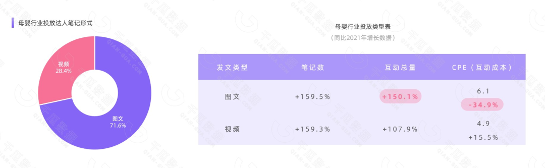 千瓜认为,当前母婴行业的营销投放图文笔记性价比较高,其互动效果也不错。出于营销费用效益最大化的考虑,品牌方可以有侧重地投放图文笔记,基于前端用户分析、综合考量达人情况、产品特性,在内容创作上推陈出新,探索如何通过笔记种草互动提升销售转化。