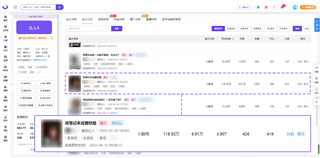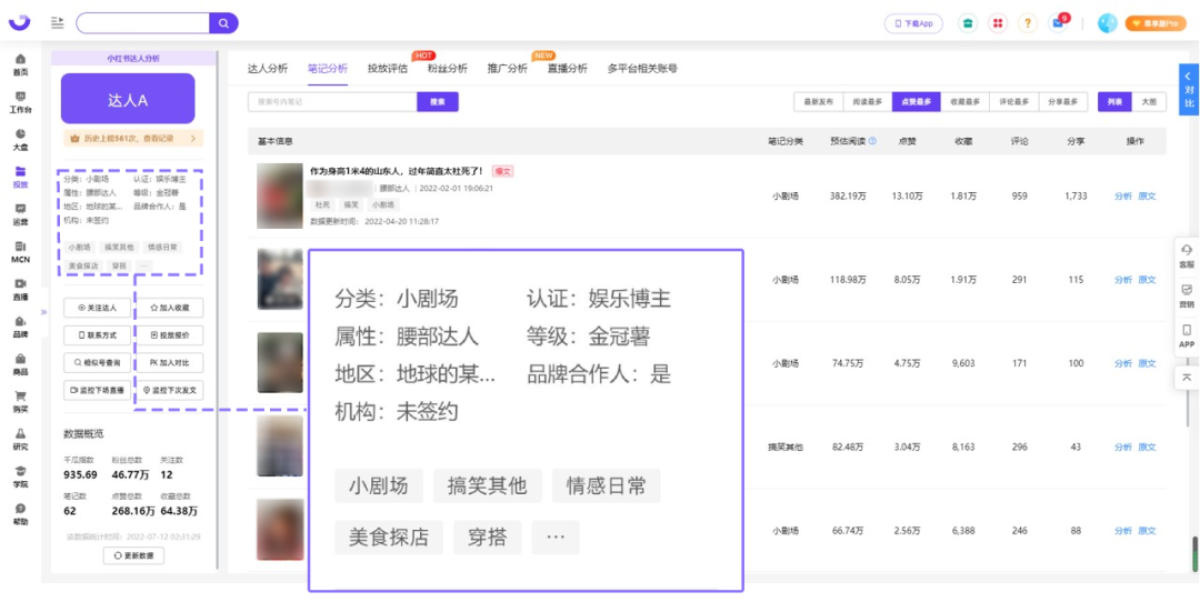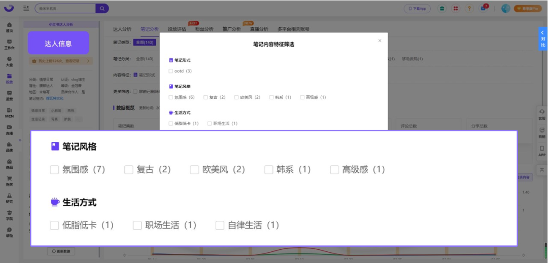 达人调性与品牌调性契合度越高,意味共创内容更易与用户形成价值共振。通过分析达人类型、达人笔记、内容风格,可了解达人调性。
