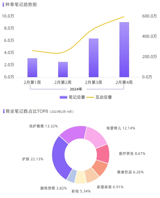 千瓜数据显示,2024年2月小红书“春日”相关种草笔记已达到20万+,预估互动量破1500万+,被寒冬藏起来的理想生活,纷纷“提上日程”。