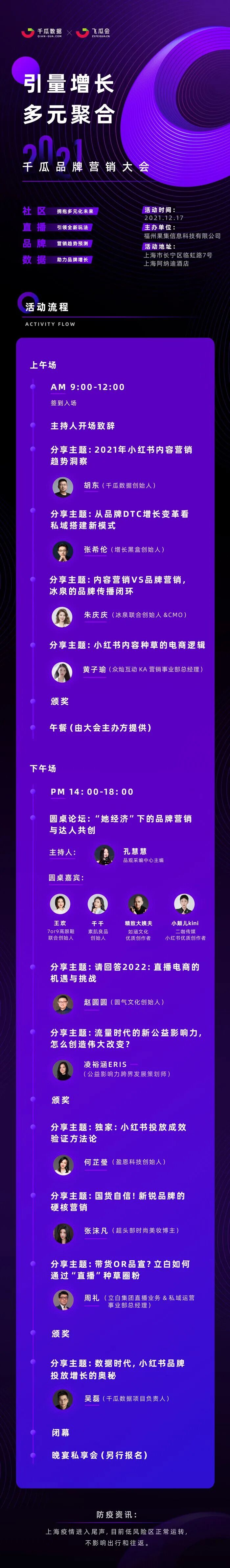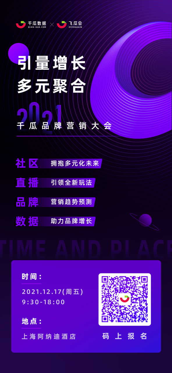 2021年12月17日(周五)上海阿纳迪酒店,千瓜品牌营销大会为你揭开品牌增长的奥秘。