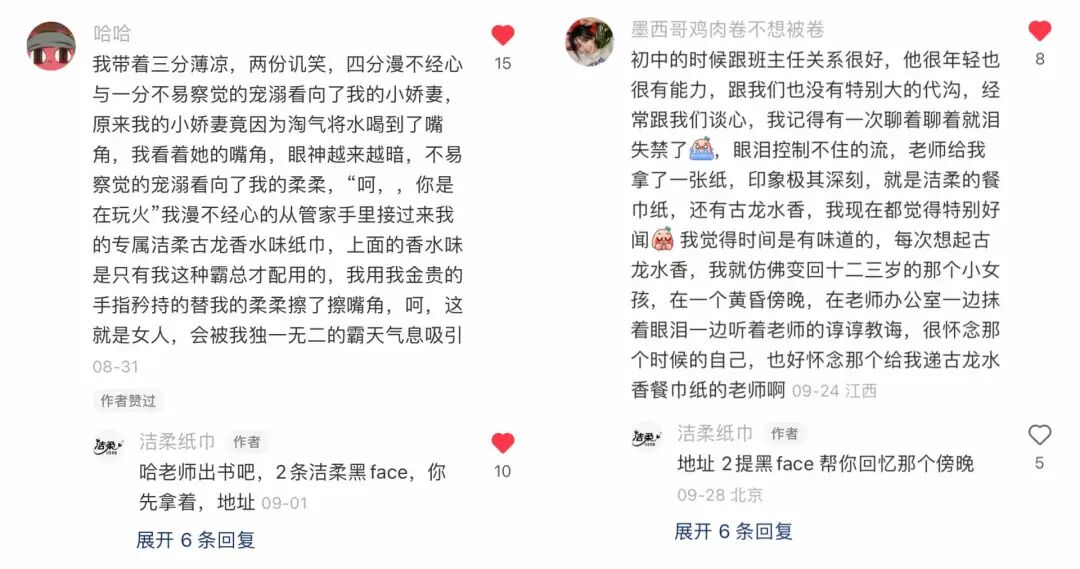 第一步,研究品牌在社交媒体上的自来水,总结受众讨论的核心。我们发现洁柔的一款古龙香黑face手帕纸非常受大众欢迎,大家都在讨论这款手帕纸的香味与某款大牌香水的味道非常相似,并且多篇小红书相关笔记都获得了较高的互动数据。