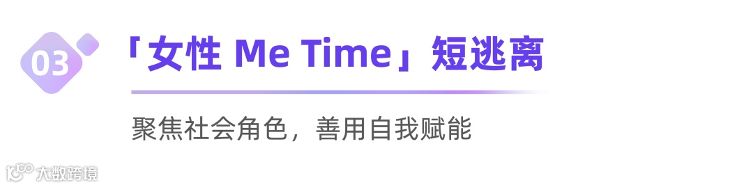 千瓜观点,人是社会性动物,大多时间注定生活在关系网之中,人际关系一定程度上也会带来压力,紧张感的来源可能是父母、孩子、伴侣……品牌不妨聚焦个体的社会身份,以“自我时间”为线索,通过手工、旅行、阅读,亦或按摩、兜风等,激发未竟之志、自我空间的探索之心,为消费者提供短暂放下社会角色,纯粹只为取悦自己而活的时刻。