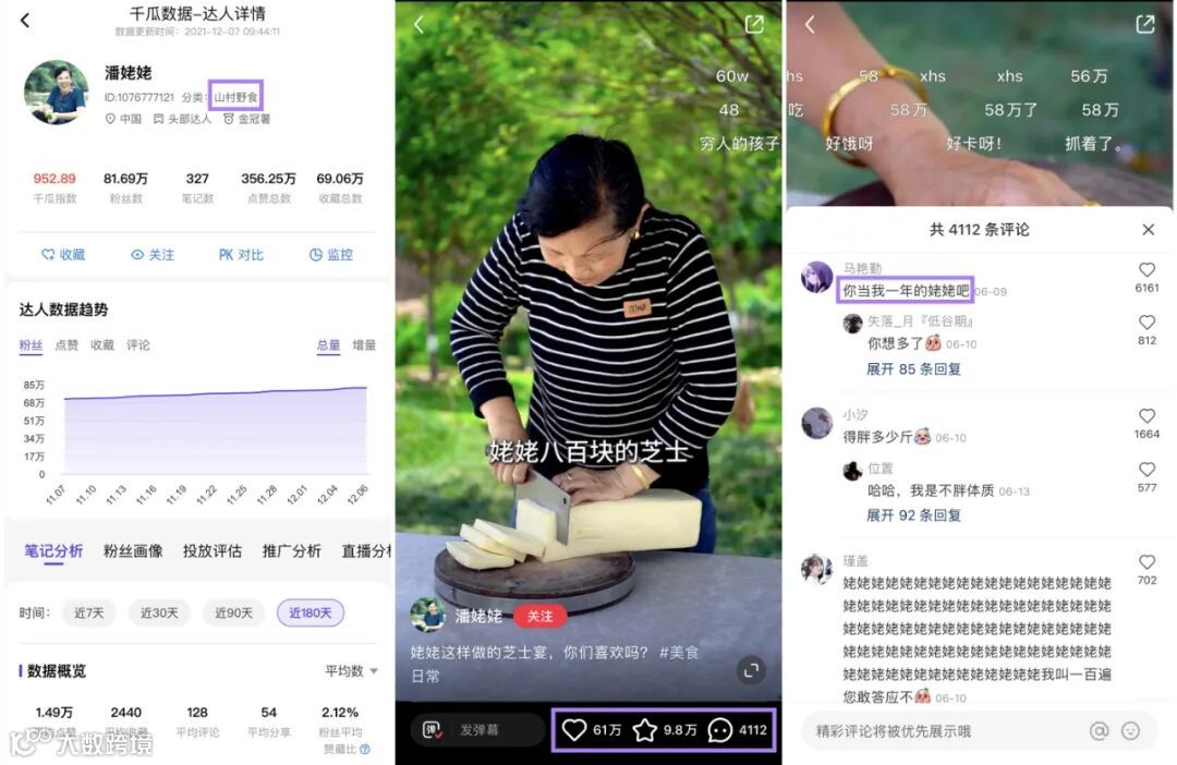 随着李子柒的大获成功,越来越多的“乡村美食家”在小红书开辟了新的天地。