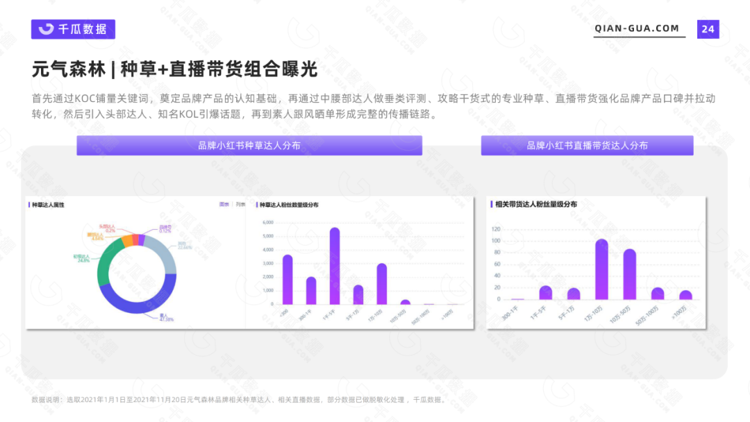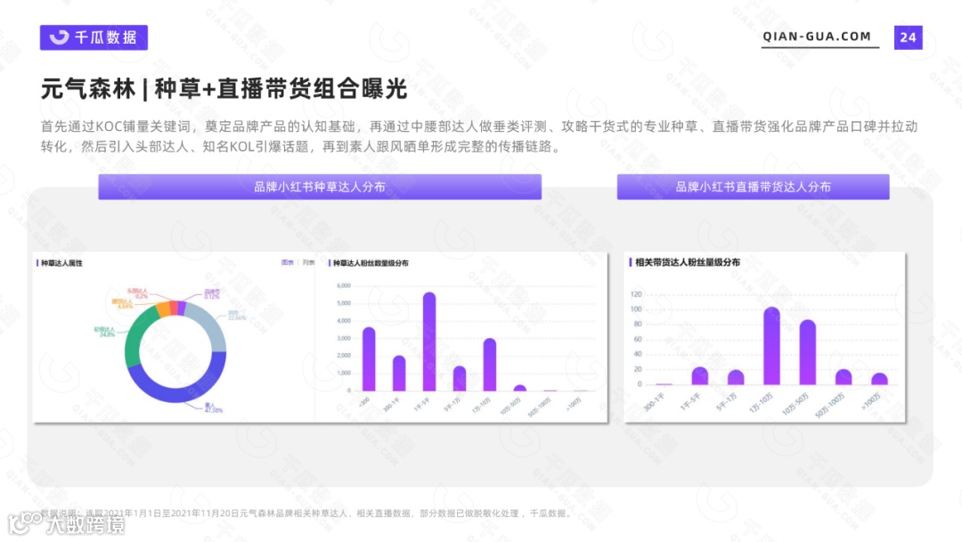在小红书达人投放矩阵中,元气森林通过达人种草+直播带货的形式对品牌进行组合曝光进而促进转化。