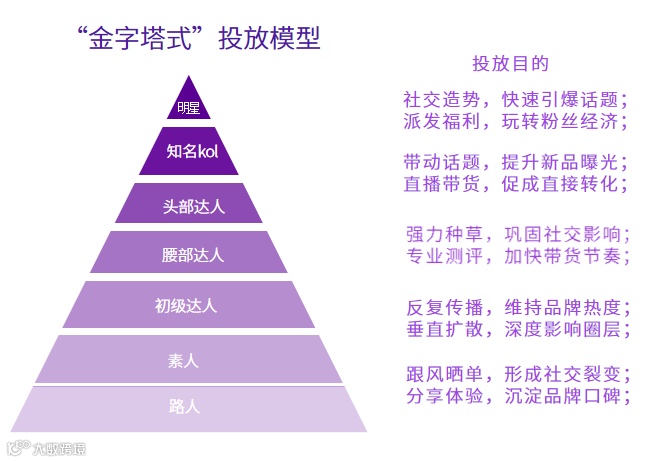 首先通过KOC铺量关键词,奠定品牌产品的认知基础,再通过中腰部达人做垂类评测、攻略干货式的专业种草、直播带货强化品牌产品口碑并拉动转化,然后引入头部达人、知名KOL引爆话题,再到素人跟风晒单形成完整的传播链路。