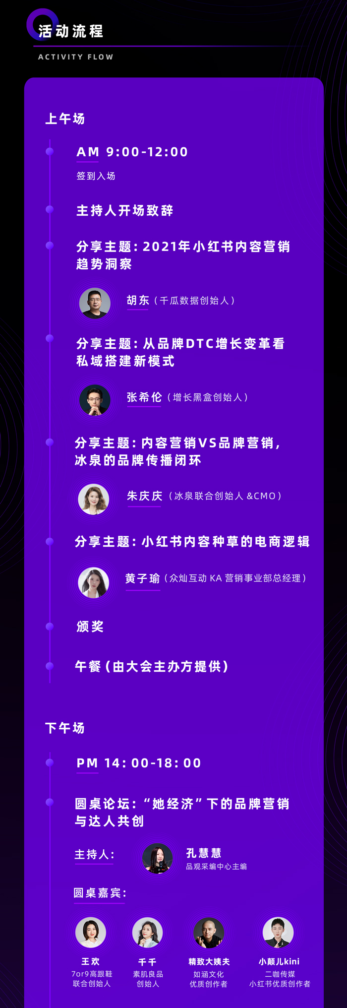 聚焦爆品思维、内容种草、达人共创、营销变革、国货发展、私域运营等众多关系2022年品牌增长趋势的关键性话题,我们邀请15+行业知名领袖,通过一场大会,用案例、用经验、用新思维解决品牌痛点!