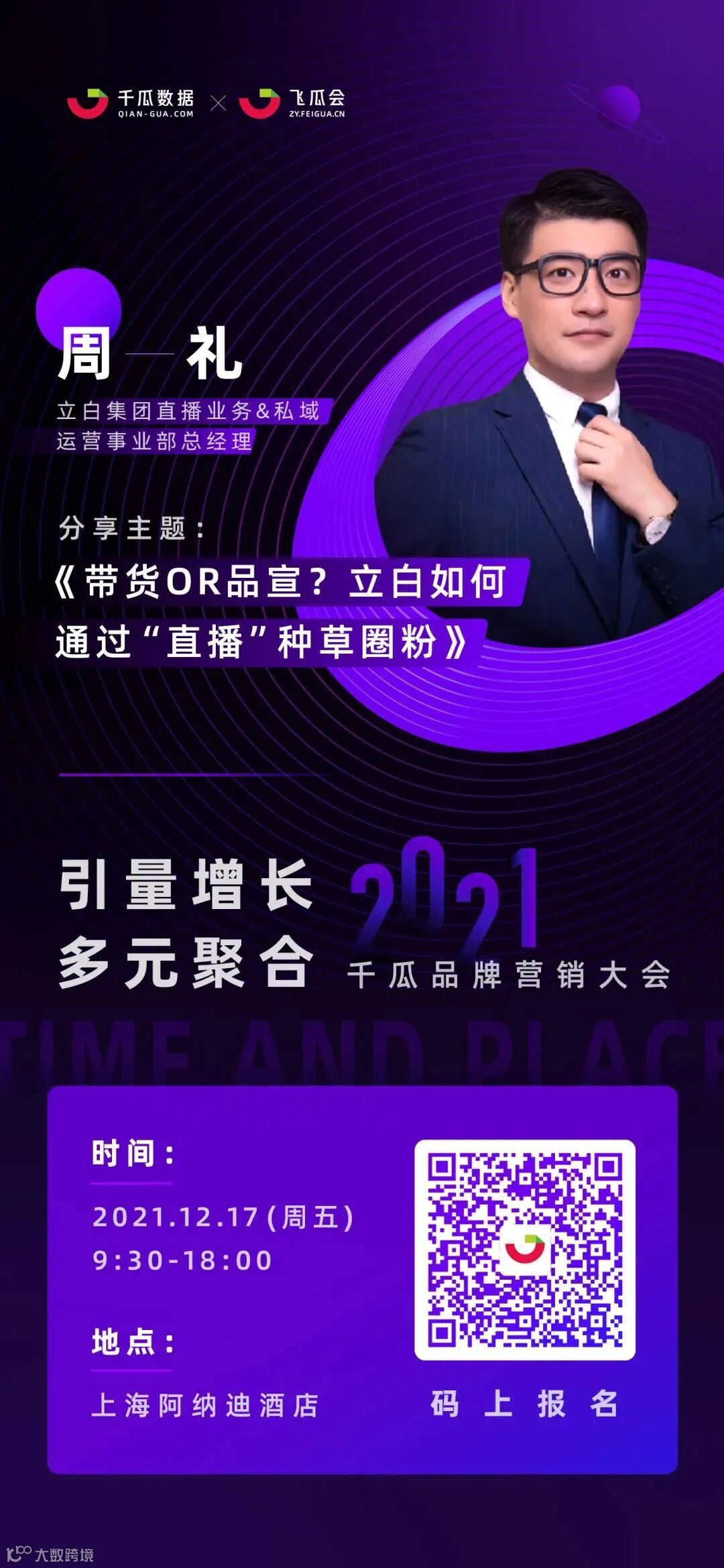 推荐各位品牌方、创始人及运营团队,来听千瓜品牌营销大会分享嘉宾立白集团:直播业务&私域运营事业部总经理-周礼的主题《带货OR品宣?立白如何通过“直播”种草圈粉》。