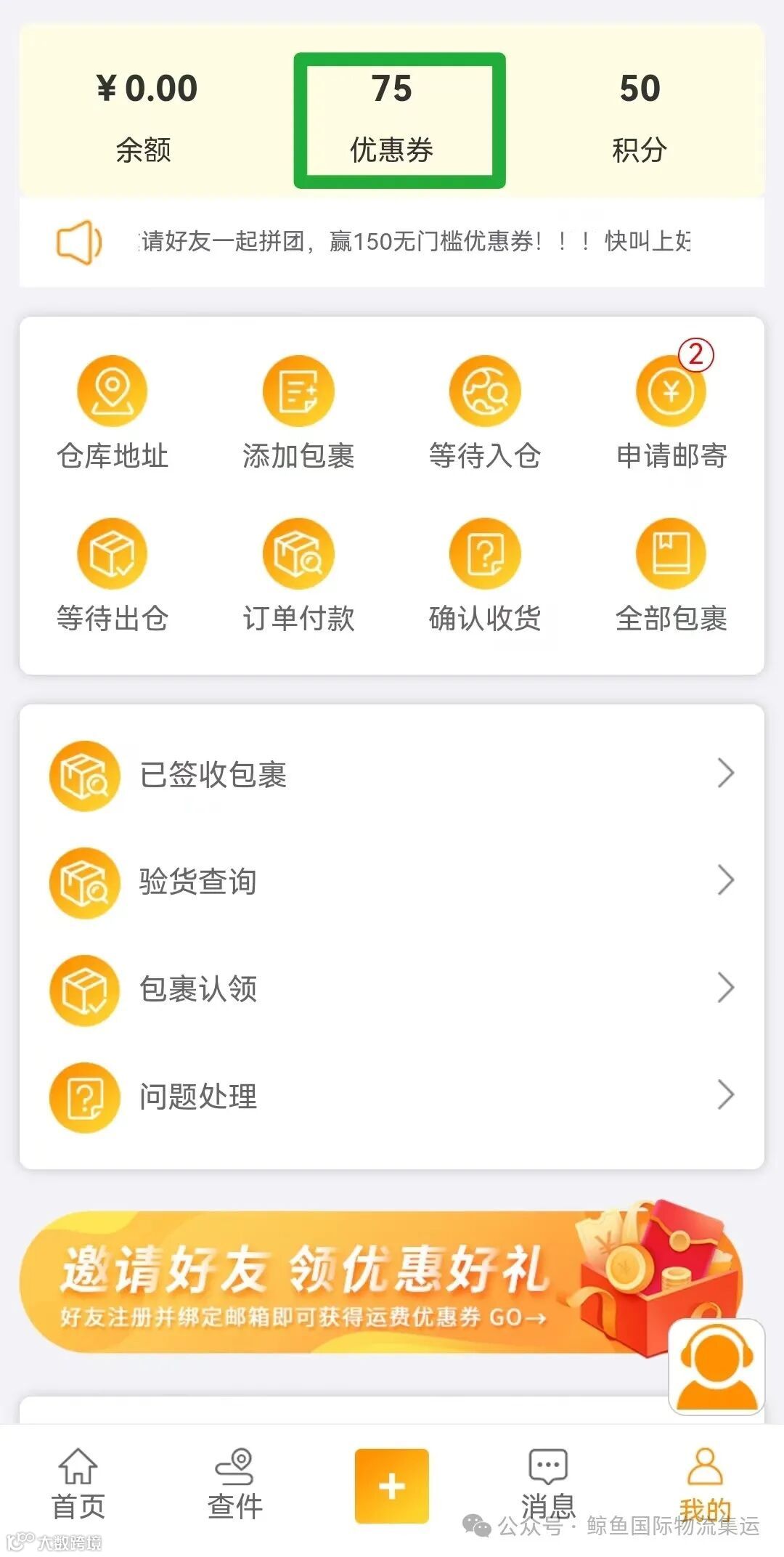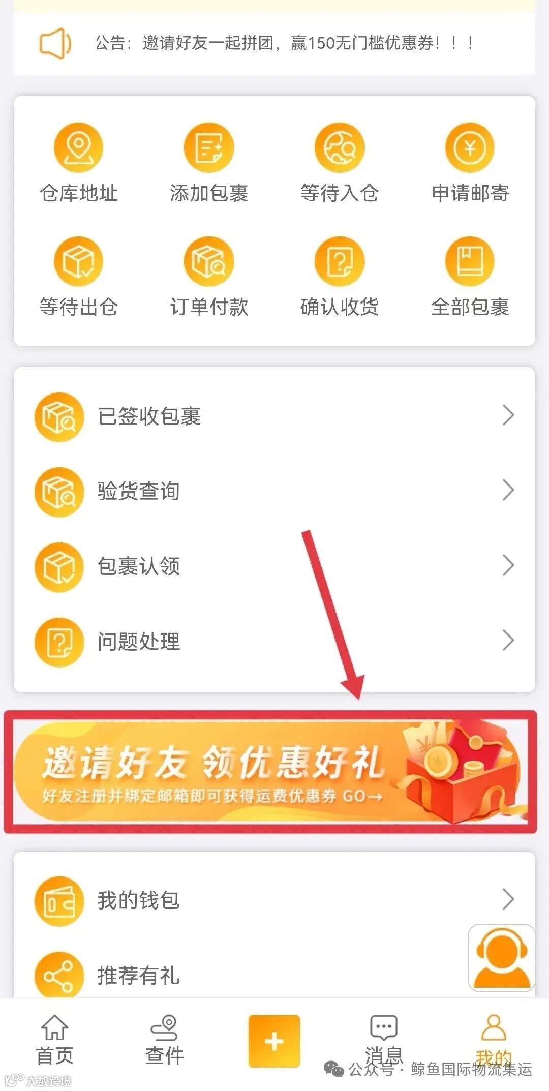 注1:公众号关注方法:微信搜索"鲸鱼国际物流集运"关注即可