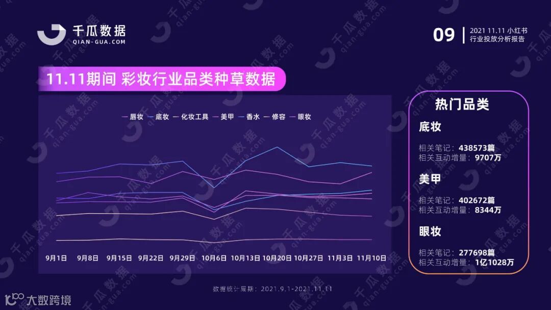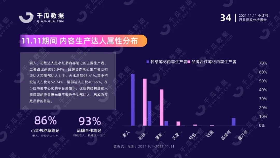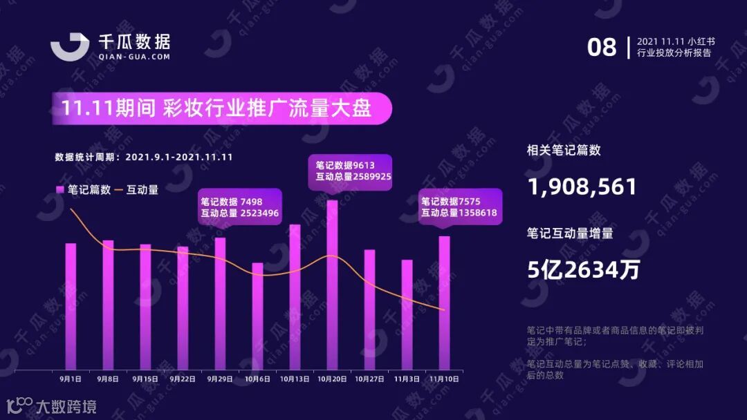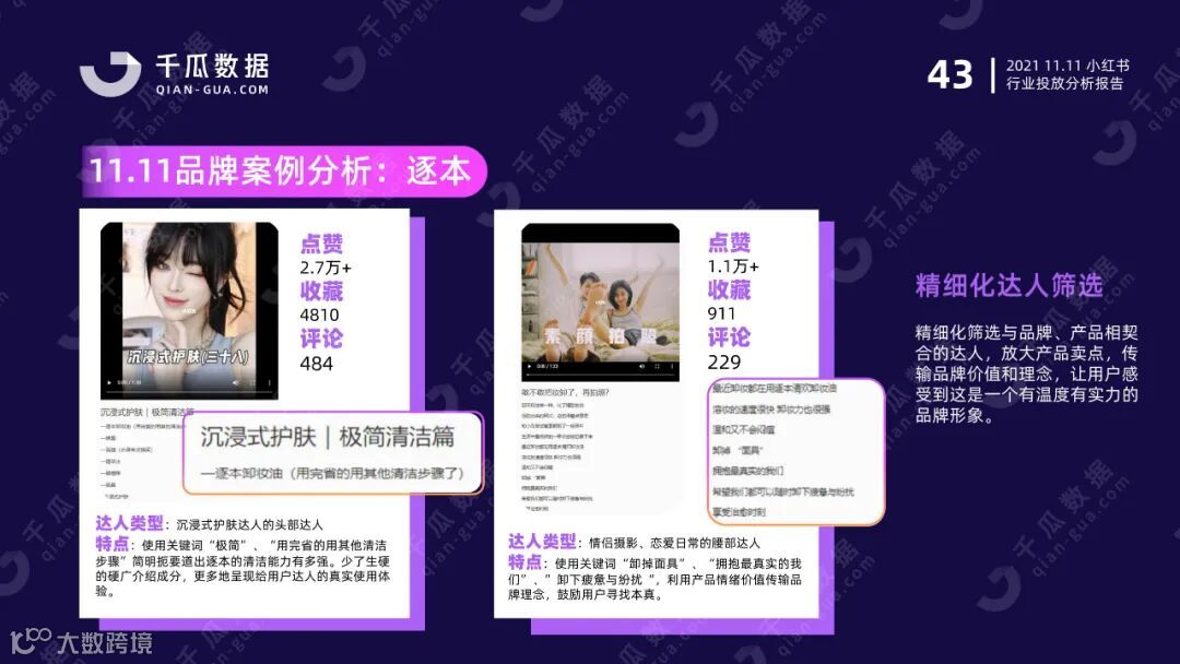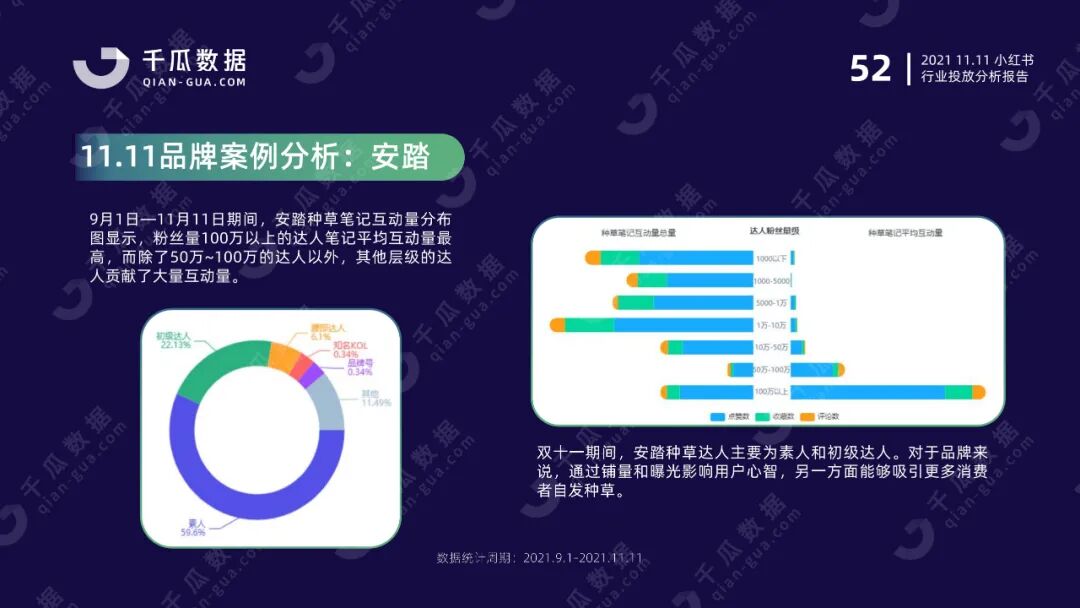 千瓜数据独家推出《2021年千瓜11.11行业投放分析报告(小红书平台)》,洞察小红书五大品类种草数据及流量大盘,分析小红书整体用户特征及用户偏好,通过品牌投放效果拆解品牌投放策略,并结合品牌案例回顾2021年小红书双十一行业投放数据,为品牌营销趋势提供数据支撑及方向前瞻。