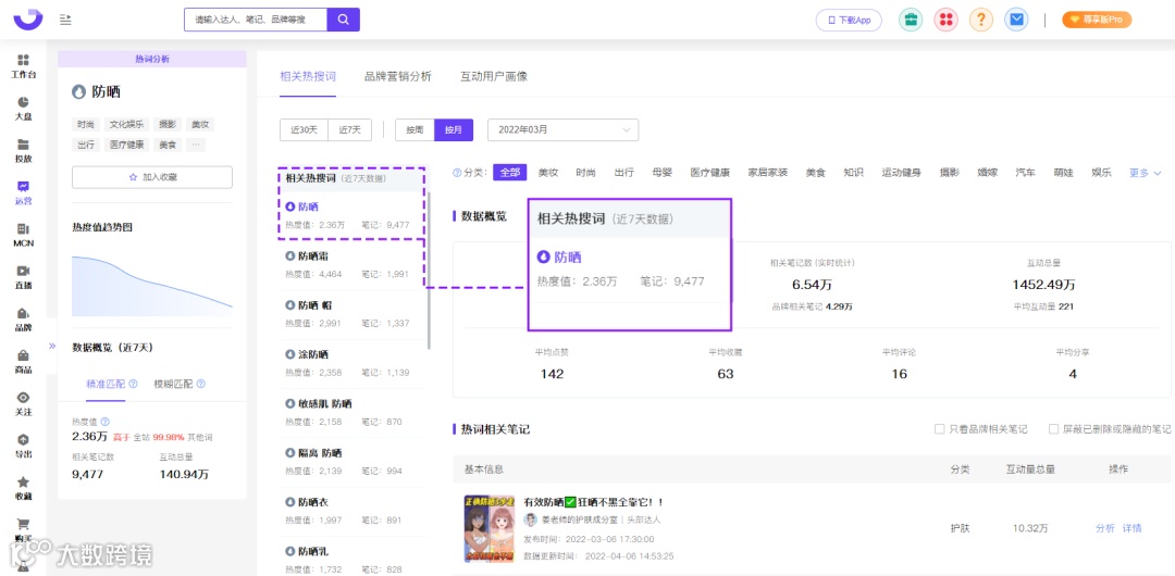 据果集·千瓜数据搜索3月份男生防晒笔记虽然仅58篇,但目前“男生防晒”市场已然出现苗头,男生防晒这一小众赛道未来的发展潜力值得期待。