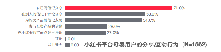 相比其他平台的单向知识传递,小红书天然的社交属性使创作者和用户之间的界限变得模糊。调研显示,其中71%的用户通过写笔记进行内容分享,一半以上的用户会在别人的笔记下评论分享。