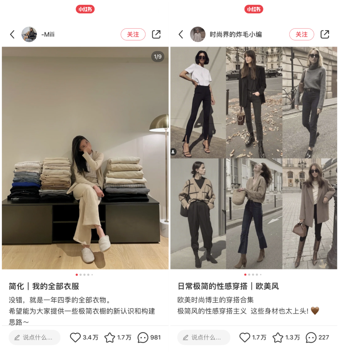 近两年火遍小红书的【新中式穿搭】、【极简主义】都是抓住了年轻用户的民族自信心和追求简约、可持续发展的心理需求。