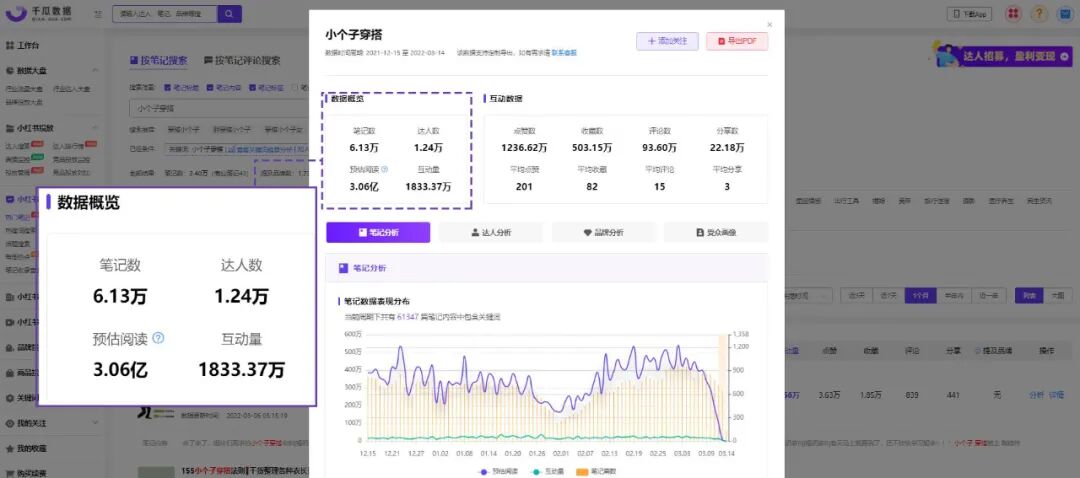 千瓜数据-关键词趋势分析显示,小红书近90天内【小个子穿搭】相关笔记6.13万篇,预估阅读高达3.06亿,互动总量为1833.37万。
