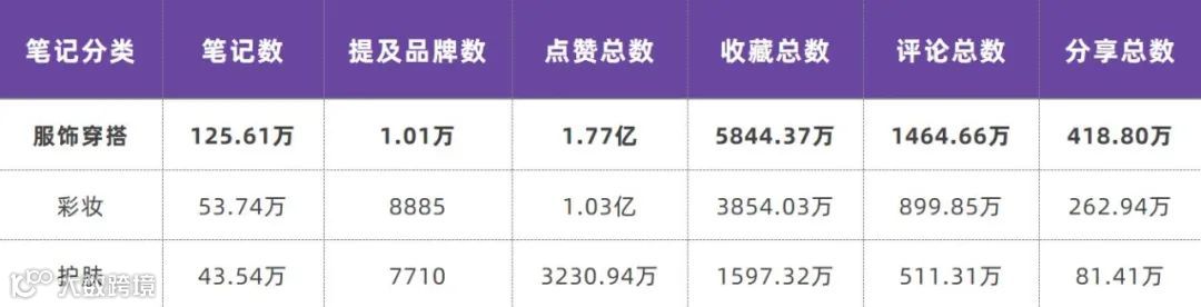 小红书【服饰穿搭】有多火?通过聚合2022年1月1日-2月28日两个月期间小红书行业种草笔记数据可见,【服饰穿搭】类目种草笔记数125.61万,互动总量超2.5亿,远超小红书【彩妆】、【护肤】品类。