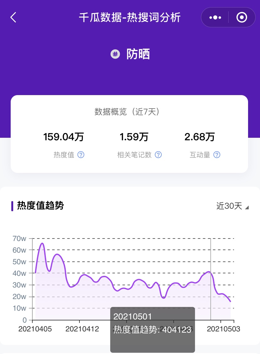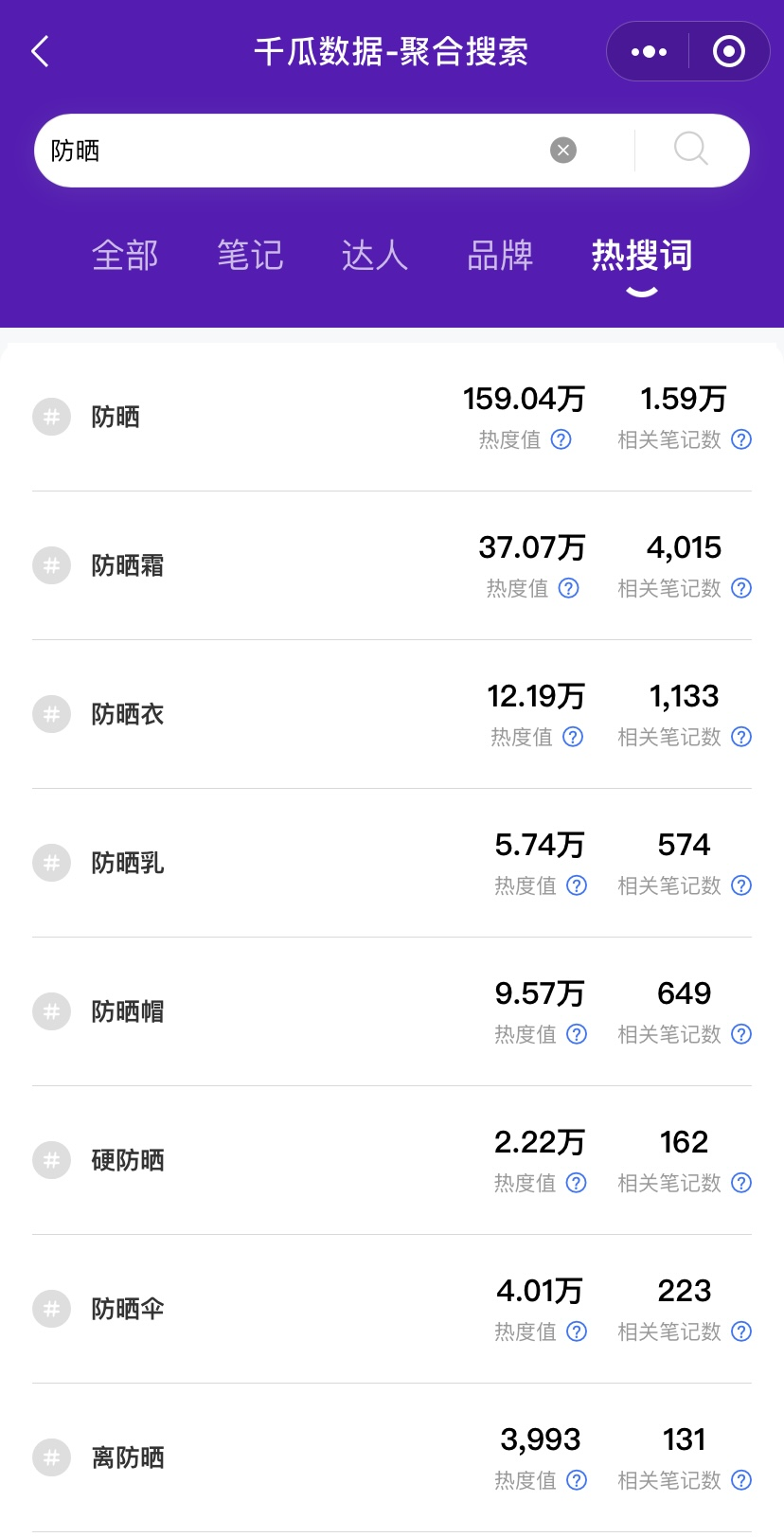 千瓜数据小程序热搜词排行榜作为帮助用户第一时间了解小红书热点的窗口,未上榜的热搜词也可以通过搜索了解其热度趋势、相关热搜词、相关笔记,整体上将从以下三个方面促进品牌方的营销投放动作。
