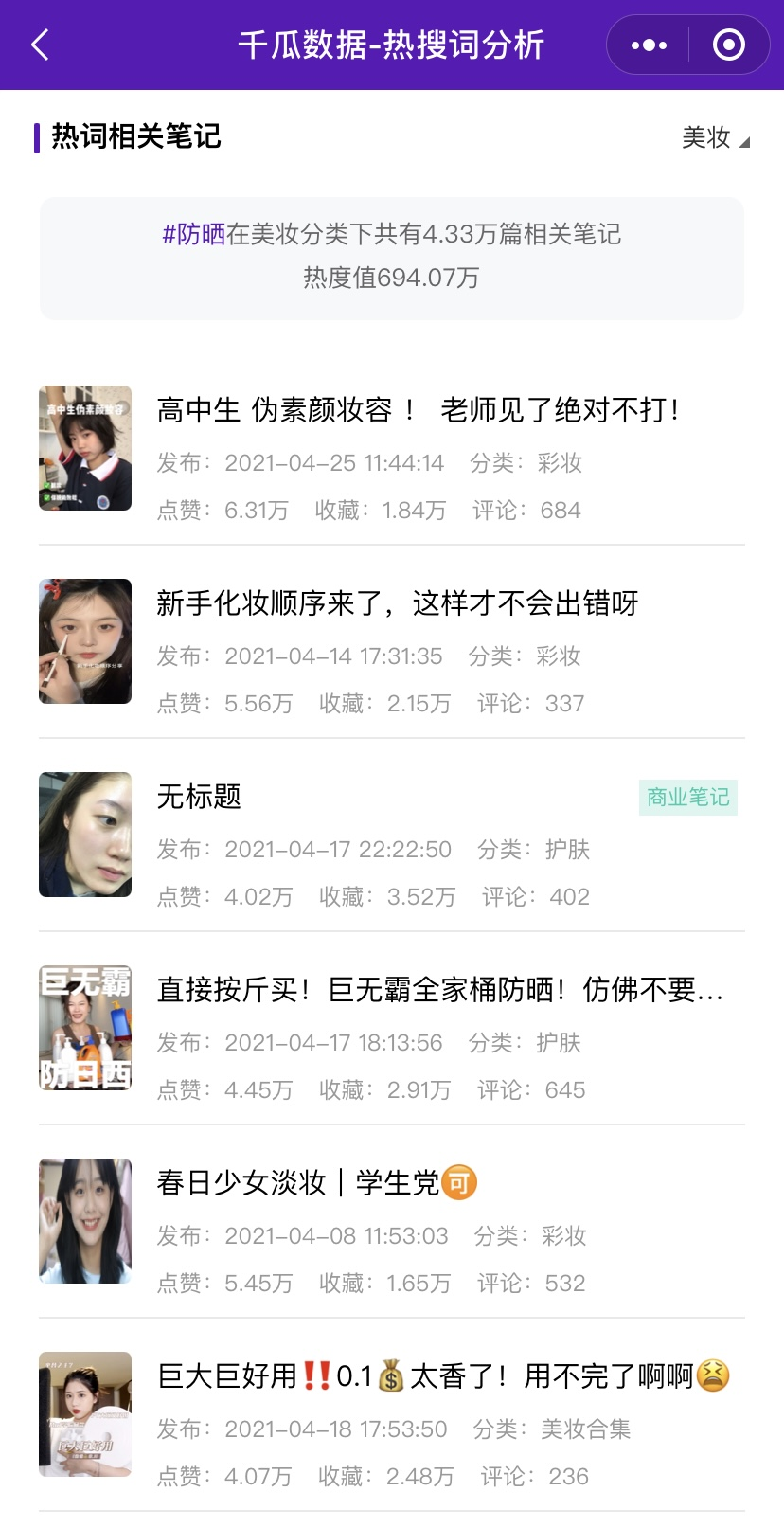 在内容上,热搜词反应了消费者的消费需求和兴趣关注点。内容为王是永恒不变的真理,只有触达消费者内心,才能引起消费者的消费欲望。通过搜索热搜词及其相关高热度笔记,品牌方可以学习笔记创作思路和表达方法,从而更好地规划投放内容。