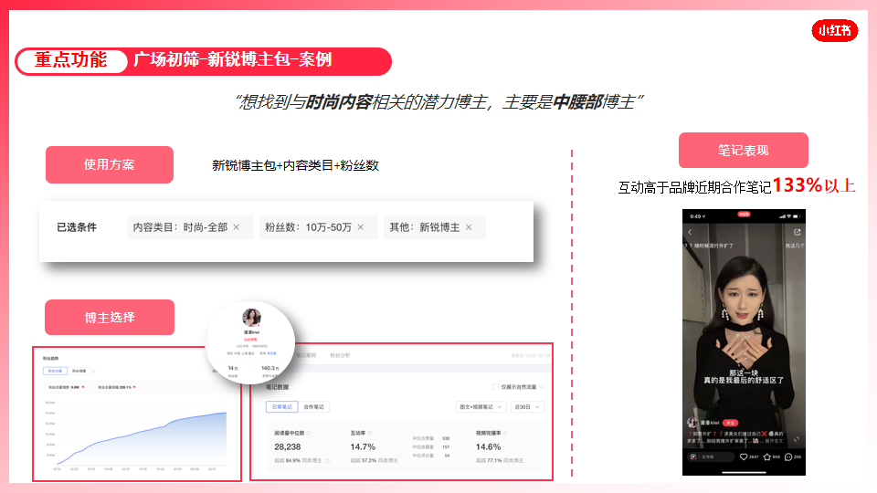 本次蒲公英平台更新「笔记关键词搜索」和「新锐博主」两大博主匹配能力,极大的提高了品牌在小红书合作博主的效率和效果,让博主合作不再难!