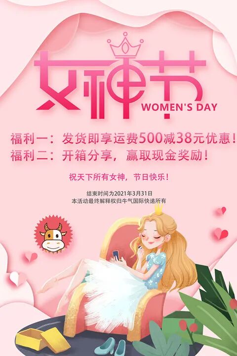 凡是今年1月1日到3月31日寄出的货物,在收到货物后,只要在小红书/抖音/留学群等社交平台分享牛气国际快递邮寄好评(图+文字或20s以上开箱视频),即可根据您的粉丝数量领取现金奖励~