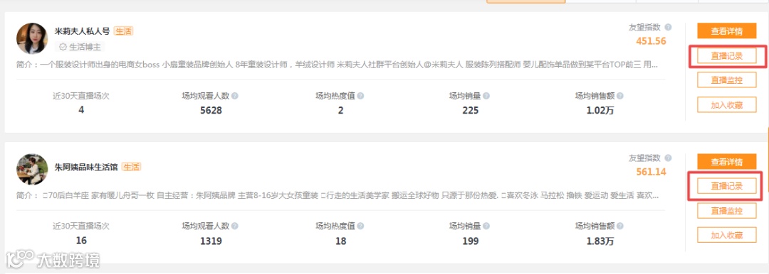 该功能可以提供分钟级直播数据监控服务,监控类型有即时监控与预约监控,监控后,博主可实时掌握直播数据变化,从直播观看人数、热度贡献、商品销量、粉丝互动等多方面数据对直播情况进行复盘。