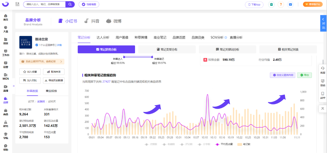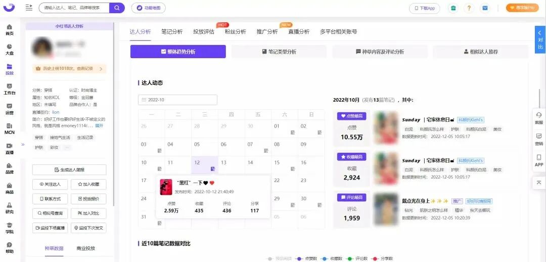 首先是看竞品在小红书的主推产品有哪些,产品投放的达人矩阵、达人类型如何,以及爆款内容的方向和图文视频占比;其次可以通过品牌笔记的报备笔记和非报备笔记的占比推测出品牌投流的占比;最后还可以观察竞品投放的节奏,例如在节点大促期间,在哪个时间做了哪些动作。