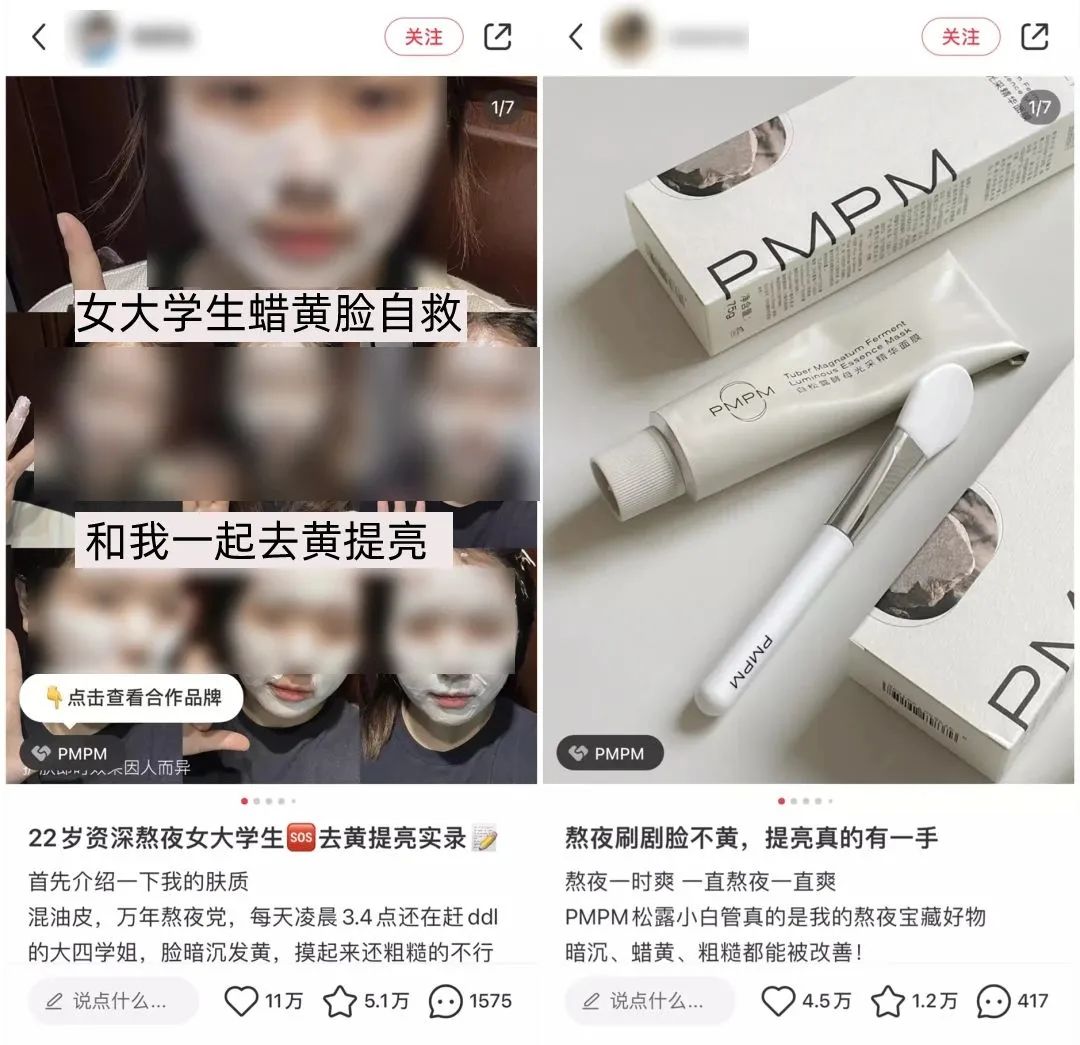 可以参考PMPM在小红书投放的成功案例,通过“低客单新品”精准锁定目标人群“学生党”,主打“熬夜”消费场景,打造出多篇爆文笔记,有力助推了品牌从0到1。