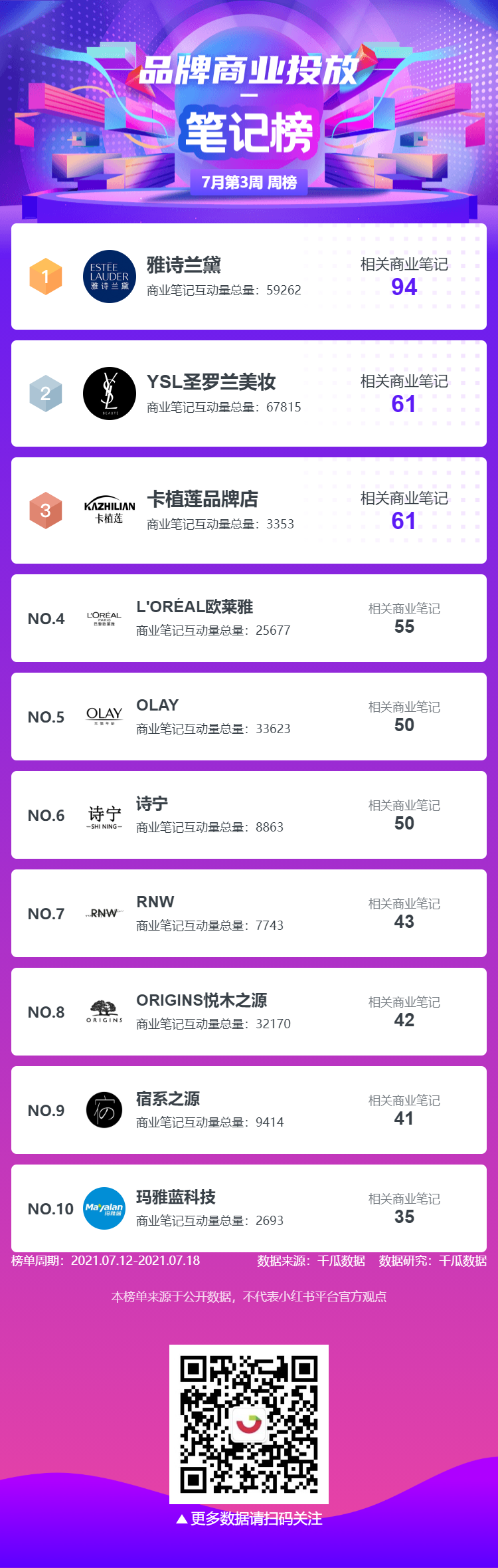 千瓜为大家整理了7月第3周五大榜单周榜(小红书平台),MCN机构榜-商业收入榜、品牌商业投放榜-笔记榜、品牌商业投放-互动量榜、创作者-商业笔记互动量排行榜、热门话题排行榜,为大家提供小红书多方位的数据参考。