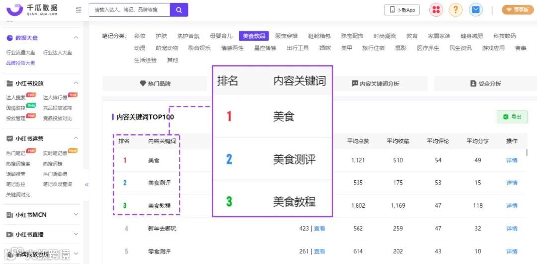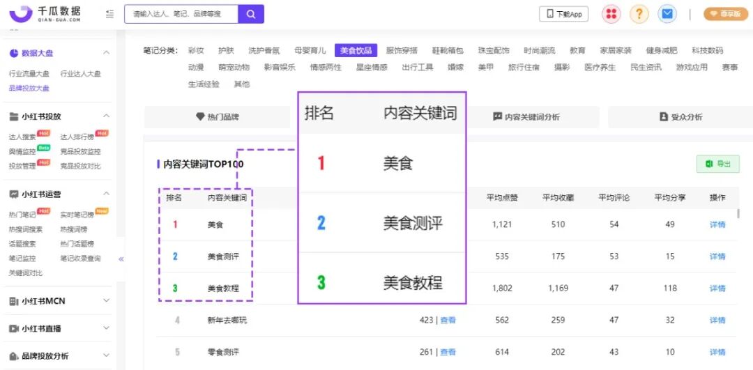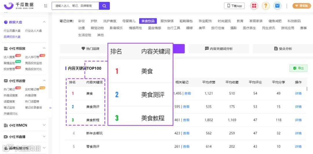 内容关键词可以直接链接到更多的相关商业笔记,通过分析互动量高的商业笔记内容,总结出可借鉴的爆文公式,帮助品牌提高笔记的ROI。