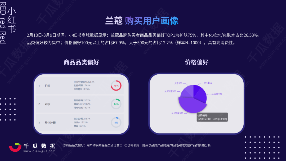 商品品牌偏好相对集中,价格偏好100以上的占比 67.9% ,具有高消费性。价格并不唯一影响因素,需要精准触达 TA的痛点和痒点 。