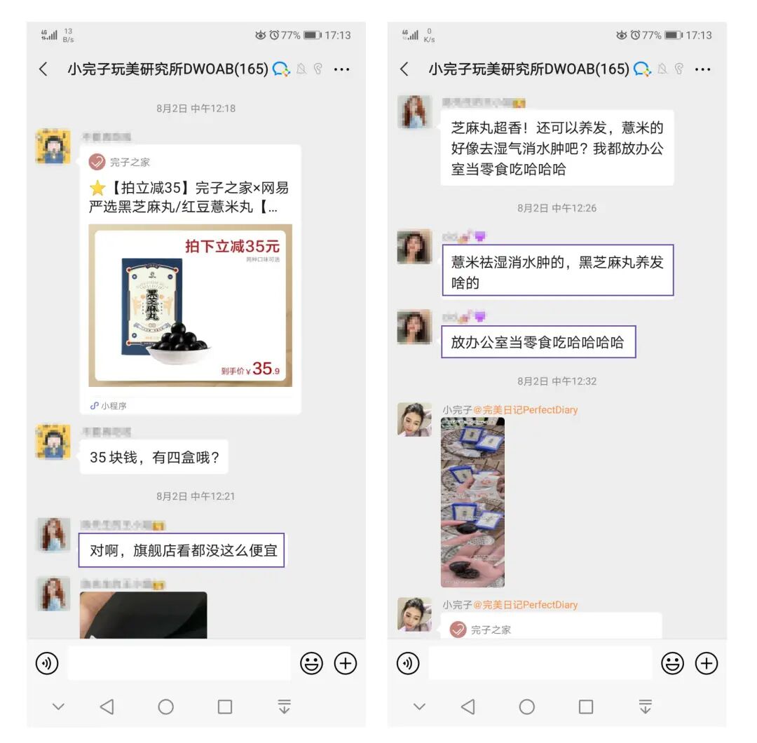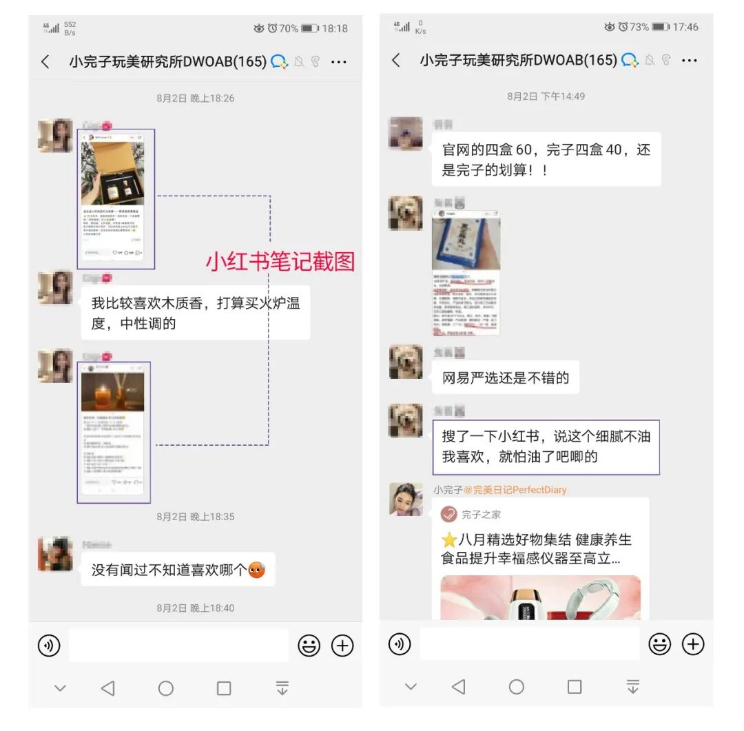 我们发现一个重要信息。即使是在完美日记的深度私域社群之中,用户也离不开小红书平台在消费决策前的参考。