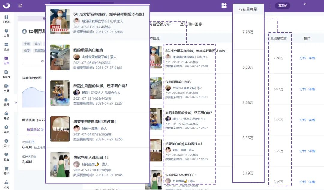 千瓜数据显示,热搜词烟酰胺位居于TOP8,种草达人大多集中于腰部达人和初级达人中,互动量也十分可观,可见用户对于刷酸的需求热情高涨。