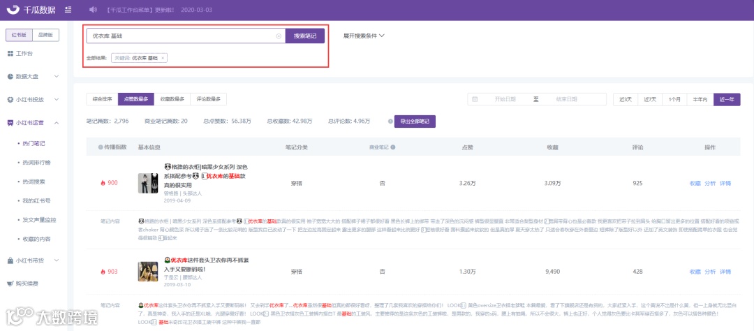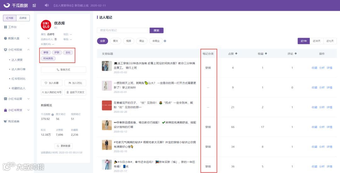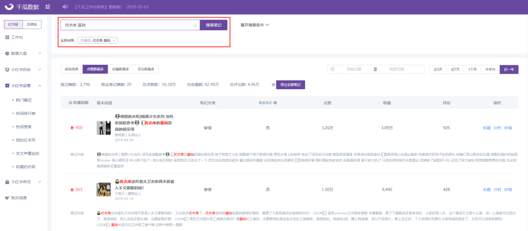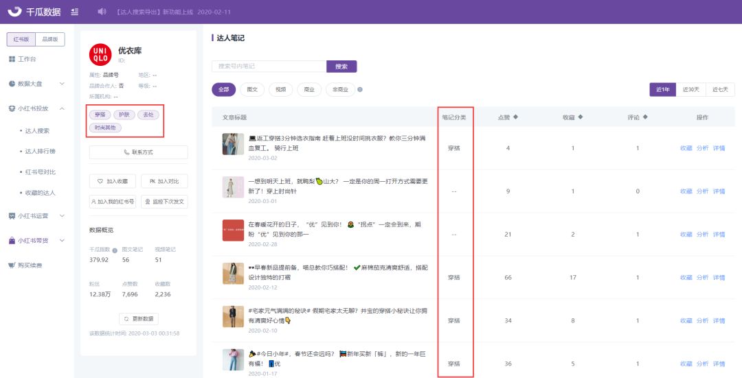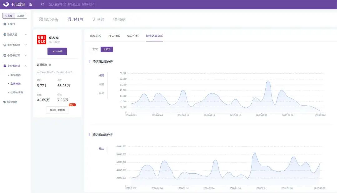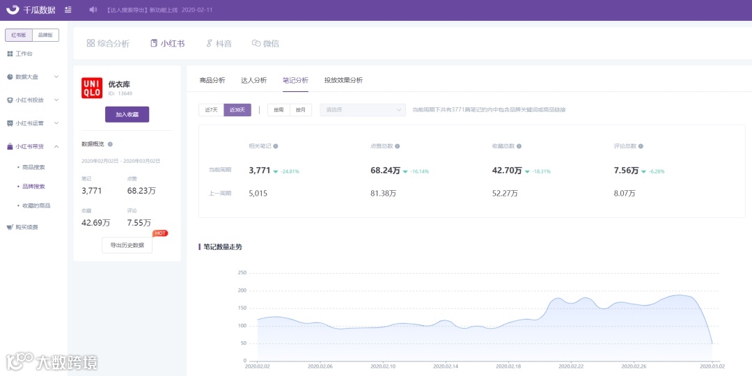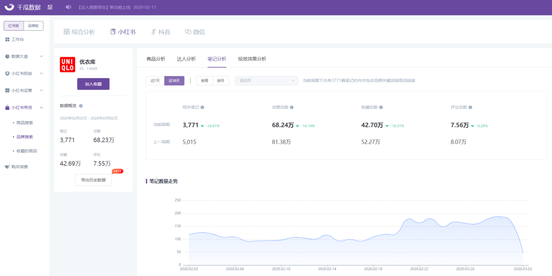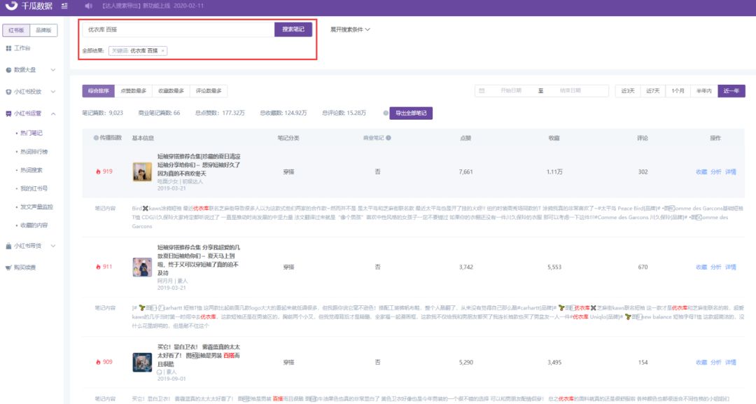 也让他几乎每个周期也都保持着稳定的内容输出,或不时的出现内容数量的增长,随着逐渐增多的笔记似乎让优衣库也更加的深入人心。