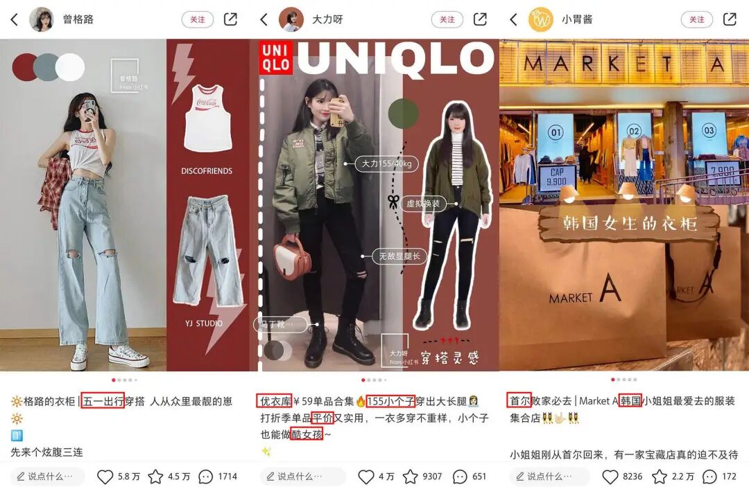 观察了众多小红书服装类笔记可以看出大家的写作角度一般针对人群,成本,效果,地区,场景,材质,品牌几个方面进行描述,为大家推荐服装、店铺。