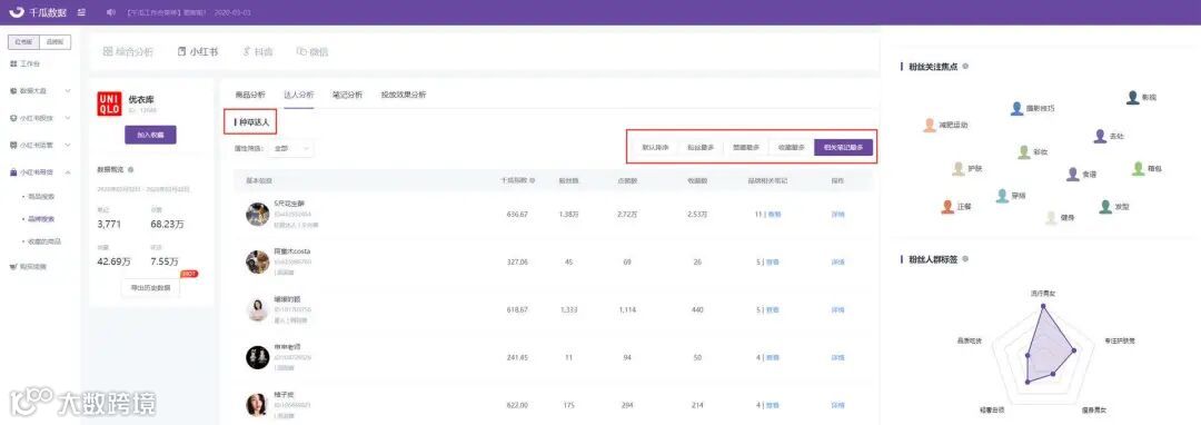 播主分享所带来的笔记互动与影响量也让优衣库这个品牌有着很大的活跃度,每天都有不少的粉丝一起互动,跳动着的曲线让优衣库这个品牌更加有活力。