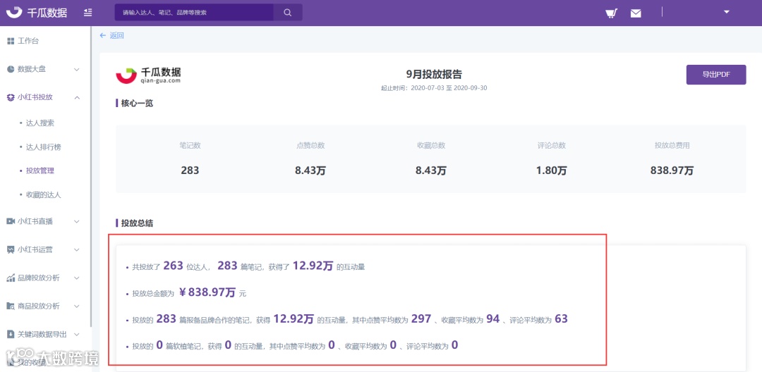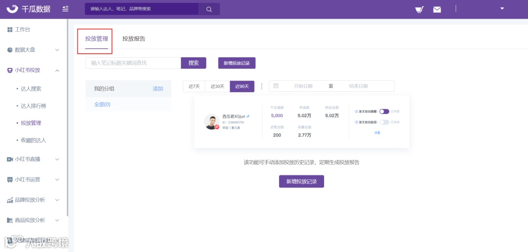为了满足千瓜用户对小红书笔记投放管理和投放数据分析的精准化需求,千瓜数据全新开发投放管理功能,为千瓜用户提供专属的投放报告。