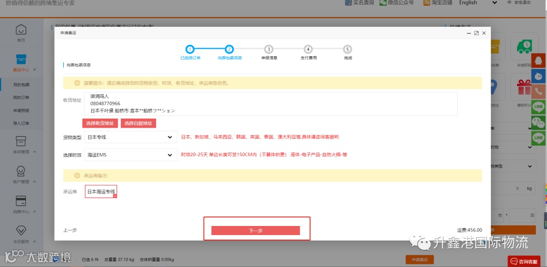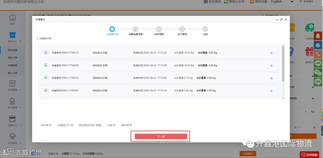 5-2 申请集运,确定订单进行下一步